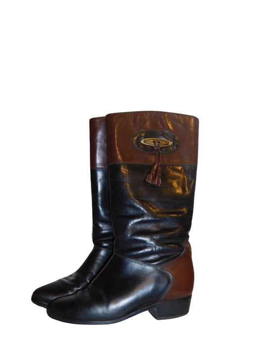 Black and Brown Knee High Boots